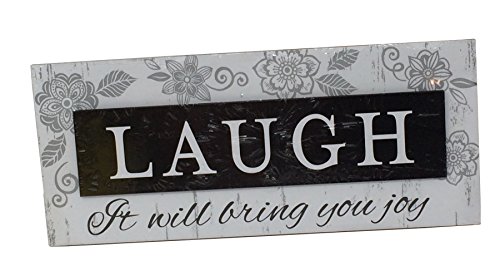 Sentimental Solid Wooden Hanging Plaque With Quote, 12" ("LAUGH It will bring you joy)