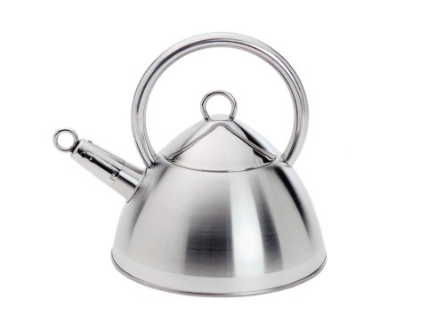 This trendy kettle is durable enough to withstand the rigors of everyday stovetop use. Made of durable stainless steel in a two-toned finish with a 3-ply base. A polite whistle will indicate that the water has reached boiling point.Feature