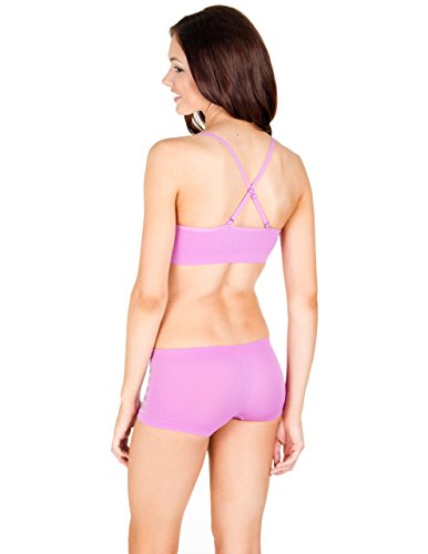 This set includes a lightly padded comfort bra with a boyshort. They are one size, so they are stretchy and comfortable. The straps of the bra are adjustable as well as removable. Boy Short Measurements: Waist: 22''-38'' Comfort Bra: 24''-38''Feature