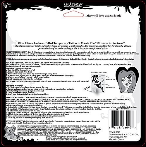 Create a Warrior Princess with creamy makeup that will last the night. Comes with makeup, eyelashes & adhesive, tribal tattoo, brush, everything you need to create a fabulous Halloween face design. A perfect combination for any warrior female. Complete instructions on back.Feature