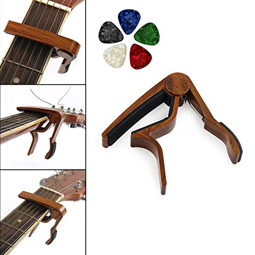 Do you want your beloved guitar to give you a more reliable and excellent performance? Do you want your guitar give give you a more reliable and excellent performance If so, this guitar capo is your best choice. It has specially designed used for altering the pitch of your guitar, fitting comfortably in your hand. The Guitar Capo is a real quick change artist and lots of pros can use it live. Easily applied and adjusted with one hand