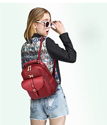 NICOLE&DORIS Frauen arbeiten Bowknot Schule Beutel Spielraum Rucksack Daypack Schulter haltbares wasserdichtes PU