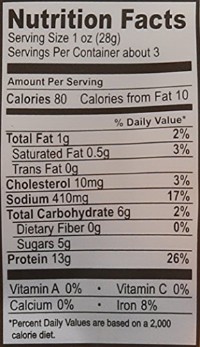 -. Feature : Premium steak with natural smoke flavor added / High in protein, all natural jerky, no preservatives, no artificial ingredient, gluten free / America's protein