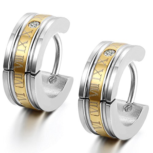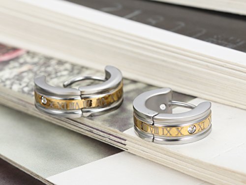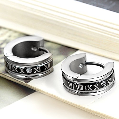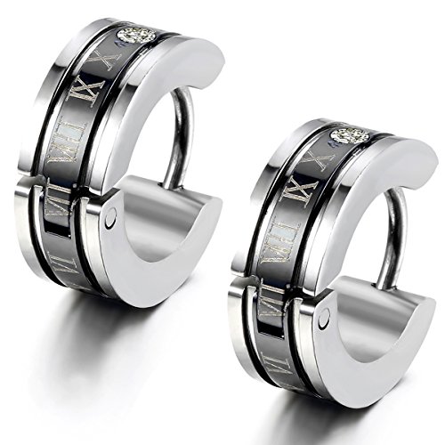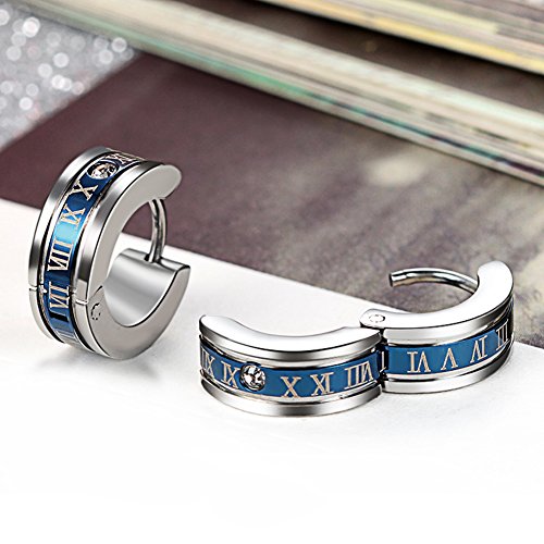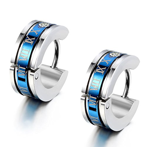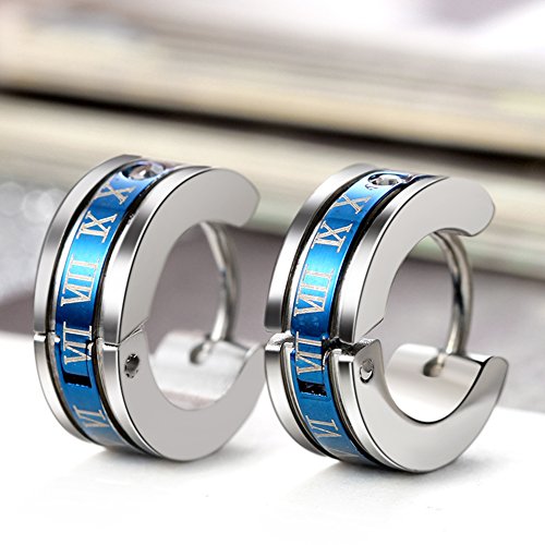 Flongo Edelstahl Ohrstecker Reifen Huggie Ohrringe Creolen Silber Blau Schwarz Gold Romischen Ziffern Einzigartig Herren, Damen