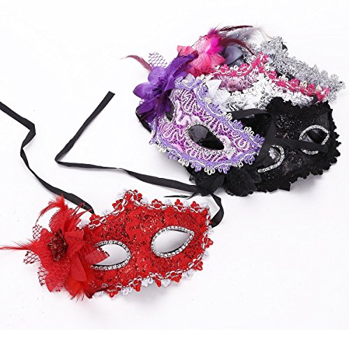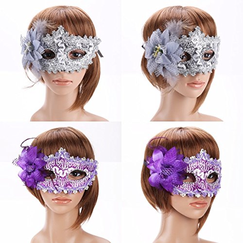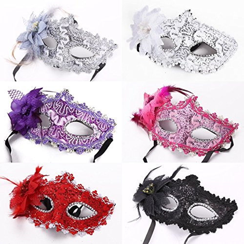 -. Feature : 6 pieces of the Venetian style masquerade cosplay masks in different colors in one set will be sold together. / Color: including silver, white, purple, pink, red and black. / Material: durable hard plastic, soft lace and rhinestone. Size (L*H): about 20cm*11cm. / Classic Venetian style cosplay face mask, very exquisite. / A beautiful lily flower and some sparking crystal rhinestones decorated on the lace mask, very elegant and attractive.
