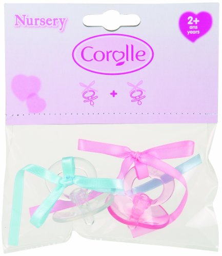 -. Binding : Toy -. Brand : Corolle -. EAN : 0027084888287 -. Feature : Two pacifiers, one with a pink ribbon and one with a blue ribbon, are the perfect accessory for a Corolle baby / Everything to take care of your baby doll from morning till night / Your child will feel like a real mom or dad when they use these accessories to add another element to playtime / At Corolle we bring caring, savoir-faire and style to everything we create, so that every little girl can find the doll of her dreams in our collection / Every Corolle doll is styled in France -. IsAdultProduct : 0 -. ItemPartNumber : T2821 -. Label : Corolle USA -. Manufacturer : Corolle USA -. Model : T2821 -. MPN : T2821 -. PackageQuantity : 1 -. PartNumber : T2821 -. ProductGroup : Toy -. ProductTypeName : TOYS_AND_GAMES -. Publisher : Corolle USA -. Size : One Size -. SKU : AVDJ-30392 -. Studio : Corolle USA -. Title : Corolle Les Classiques Doll Accessories (Pacifiers Set) -. UPC : 027084888287 -. Warranty : No Warranty