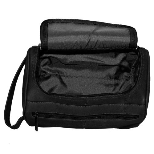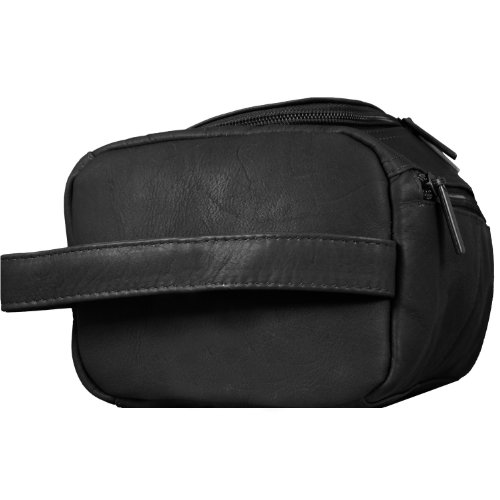 NHL Pangea Black Leather Deluxe Shaving Bag
