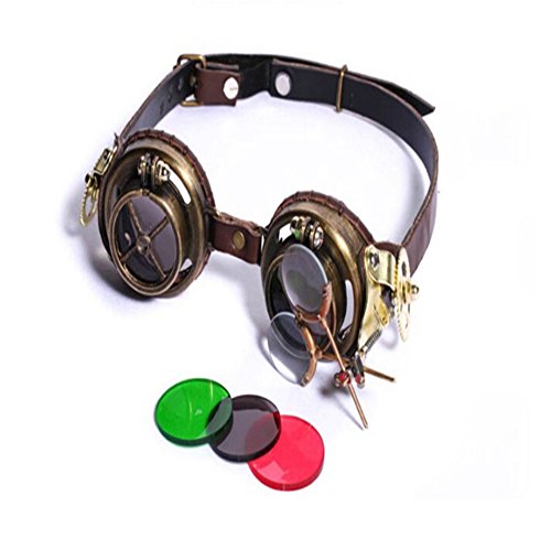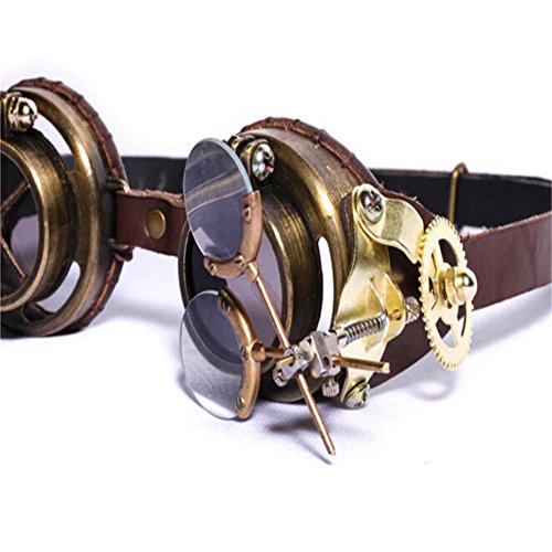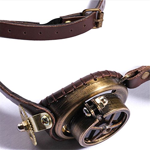-. Feature : 100% Brand New and High Quality. / Material:Metal,brass,cow leather,sheep leather,PU / Fits different head size with adjustable Belt / A necessary costume accessory for Steampunk's wardrobe / Application:Cosplay,photo prop,outdoor sports etc