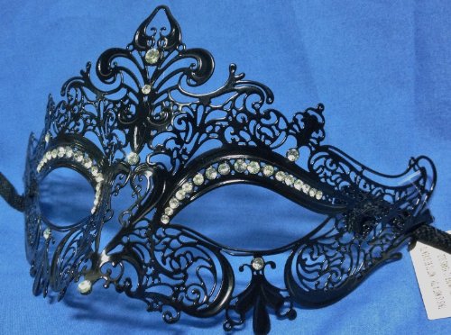 -. Title : Mardi Gras Black Laser Cut Metal Venetian Masquerade Ball Mask with Crystals