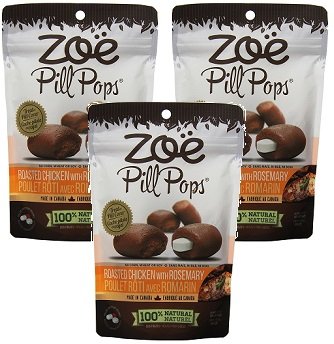 -. Feature : (3 Pack) Zoe Pill Pops Roasted Chicken with Rosemary - 3.5 Ounces each / Take the stress out of giving medications / Savoury fragrance & flavor encourage stress-free acceptance of medication 100% natural / no corn, no wheat, no soy, no artificial flavors or preservatives Individually wrapped in two's to maintain moistness / Made in Canada of only north American ingredients - nothing from china