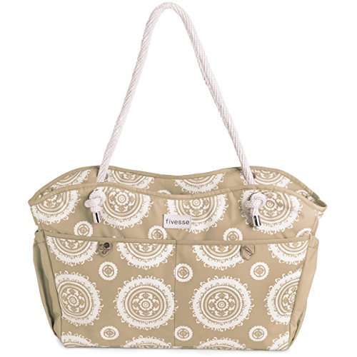 -. Brand : Fivesse -. ClothingSize : One Size -. Color : transparent -. Department : unisex-adult -. EAN : 0857785004514 -. Feature : Dimensions: 17 x 13 x 6 inches and weighs 1.85 lbs / Water proof lining, together with the water proof zipper makes the bag highly water resistant / Pocket for sunscreen so it won't spill out onto everything else in your bag / Separate pocket for your snacks / Interior pocket for your phone to protect it from direct sun and water -. Label : Fivesse -. Manufacturer : Fivesse -. Model : 96005 000 00 000 -. MPN : 96005 000 00 000 -. NumberOfItems : 1 -. PackageQuantity : 1 -. PartNumber : 96005 000 00 000 -. ProductGroup : Apparel -. ProductTypeName : LAGE -. Publisher : Fivesse -. Size : One Size -. Studio : Fivesse -. Title : Fivesse Beach Tote - Tan Sun -. UPC : 857785004514