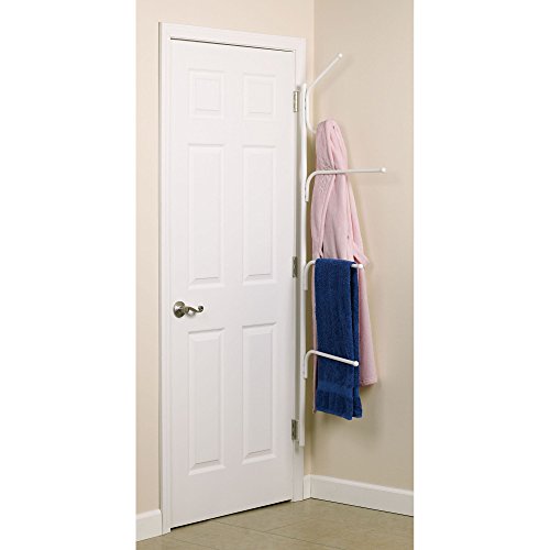 Household Essentials H12101 Hinge It Clutterbuster Towel Bars and Hook Valet | 3 Towel Bars and Hook ALL-IN-ONE | White