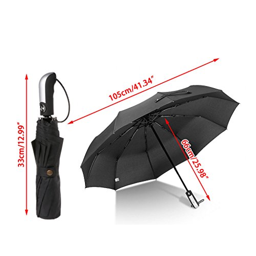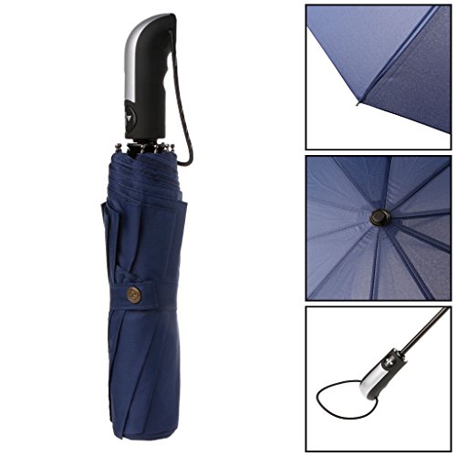 Studio : Yumian Publisher : Yumian Product Description Features: A better umbrella - stylish, reliable, durable, and highly wind resistant. The umbrella is coated with the industry leading fabric can repel water and dry fast.The frame is fortified with 10 ribs ,which is made of premium fiberglass and high quality stainless steel.Every umbrella canopy is made of micro-weave fabric,it can be opened and closed continuously Super Fast Auto Open And Close: One second one hand operation,just push the button once to automatically open and press again to instantly fold the canopy closed.Auto close is handy for quick entry into a car,building or tent.High quality design built to last and withstand the strongest winds.It's abrasion resistant, mold and mildew resistant. Long Handle:This umbrella owns long handle,easy to hold.A single open/close button set in a stylish pliable non-slip rubber comfort fat grip handle with an attached elastic looped wristlet. The ergonomic, slip-proof, and rubberized handle with wrist strap allow for easy carrying. Portable And Lightweight - Now you needn't choose big umbrella.This excellent umbrella is the perfect combo of portability, protection and durability. Keep it in your briefcase, backpack, or luggage. Now it's easy for you to use when you are in rainy or windy day.It comes with waterproof leather case,make your umbrella looks so high-end posh Specifications: Color: Dark Blue/Black SPF: SPF20 Material: Resistant Cloth steel glass fiber Size: Unfolded: 105x66cm/41.34x25.98"(DxH) Folded Length:33cm/12.99" Quantity: 1Pc Note: 1.Transition: 1cm=10mm=0.39inch 2.Please allow 0-3cm error due to manual measurement. pls make sure you do not mind before you bid. 3.Due to the difference between different monitors, the picture may not reflect the actual color of the item. Thank you Package includes: (Without retail package) 1Pc x Windproof Umbrella