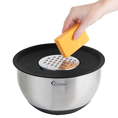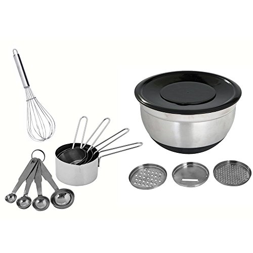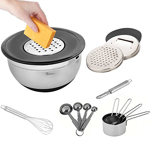 Kosma 16 Pc Premium Mixing Bundle with Stainless Steel Mixing Bowl 24 cm with Grater Plates, 4Pc Measuring Cups, 4Pc Measuring Spoons, Whisk and Peeler