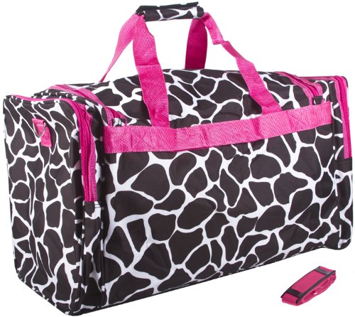 -. Binding : Apparel -. Brand : World Traveler -. Department : unisex-adult -. Feature : 600d polyester / Two front zipper pockets and 2 side pockets / Silver pewter hardware, detachable and adjustable shoulder strap / Dimensions: 22 inch l x 11 inch w x 12 inch h - 2.4 lb. / 22x10x11 -. Label : World Traveler -. Manufacturer : World Traveler -. Model : 81T22-603 -. PackageQuantity : 1 -. ProductGroup : Apparel -. ProductTypeName : LAGE -. Publisher : World Traveler -. Size : One Size -. Studio : World Traveler -. Title : World Traveler Giraffe 22-Inch Travel Duffle Bag