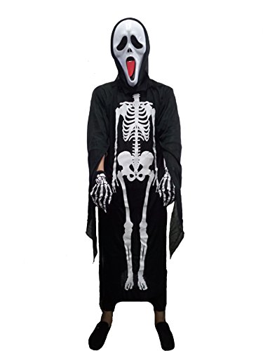 -. Title : Adult Halloween Costume Skeleton Cloak with Scream Ghost Mask and Skeleton Gloves