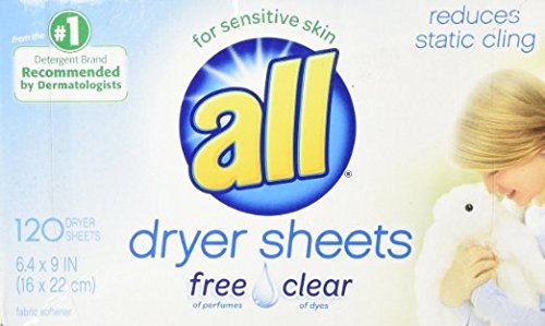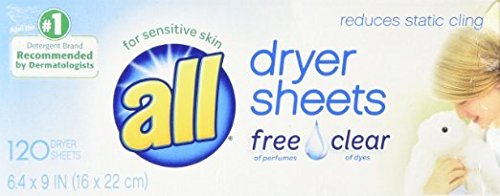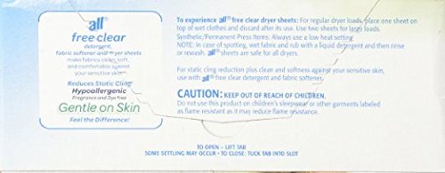 All Fabric Softener Dryer Sheets, Free Clear, 120 Dryer Sheet Count Box (Pack of 2)
