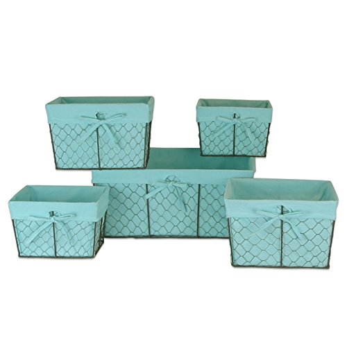 Home Traditions Vintage Metal Chicken Wire Storage Basket with Removable Fabric Liner, Set of 5 Mixed Nesting Sizes, Aqua