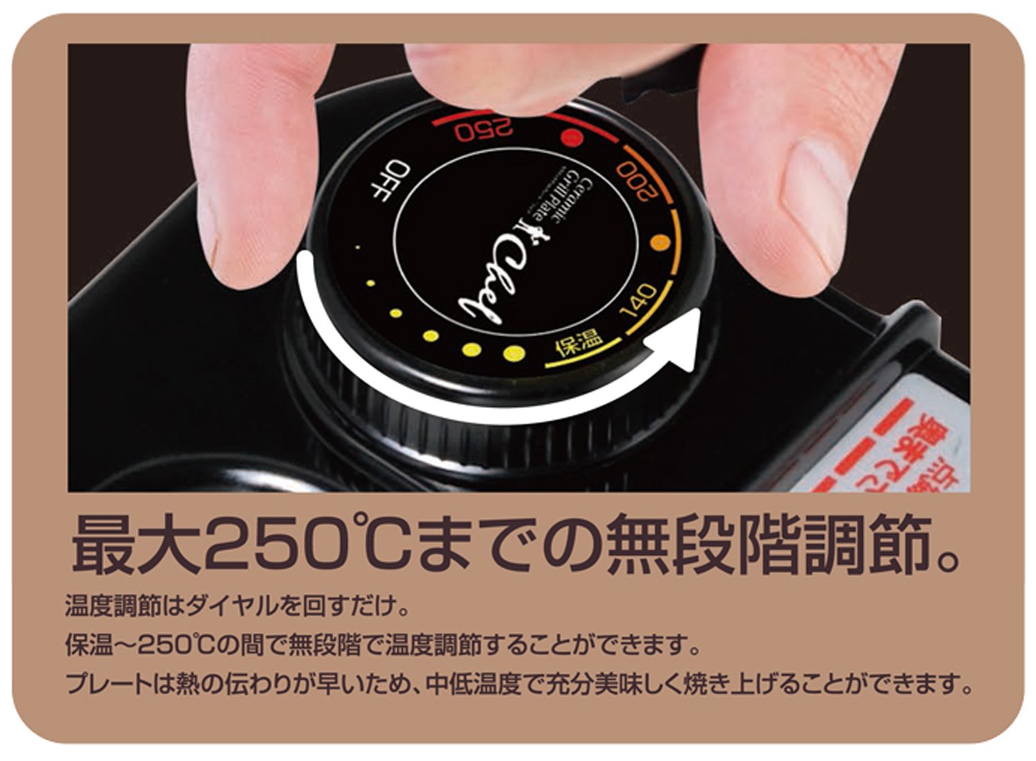 The temperature can be adjusted steplessly between heat retention and 250 ° C
