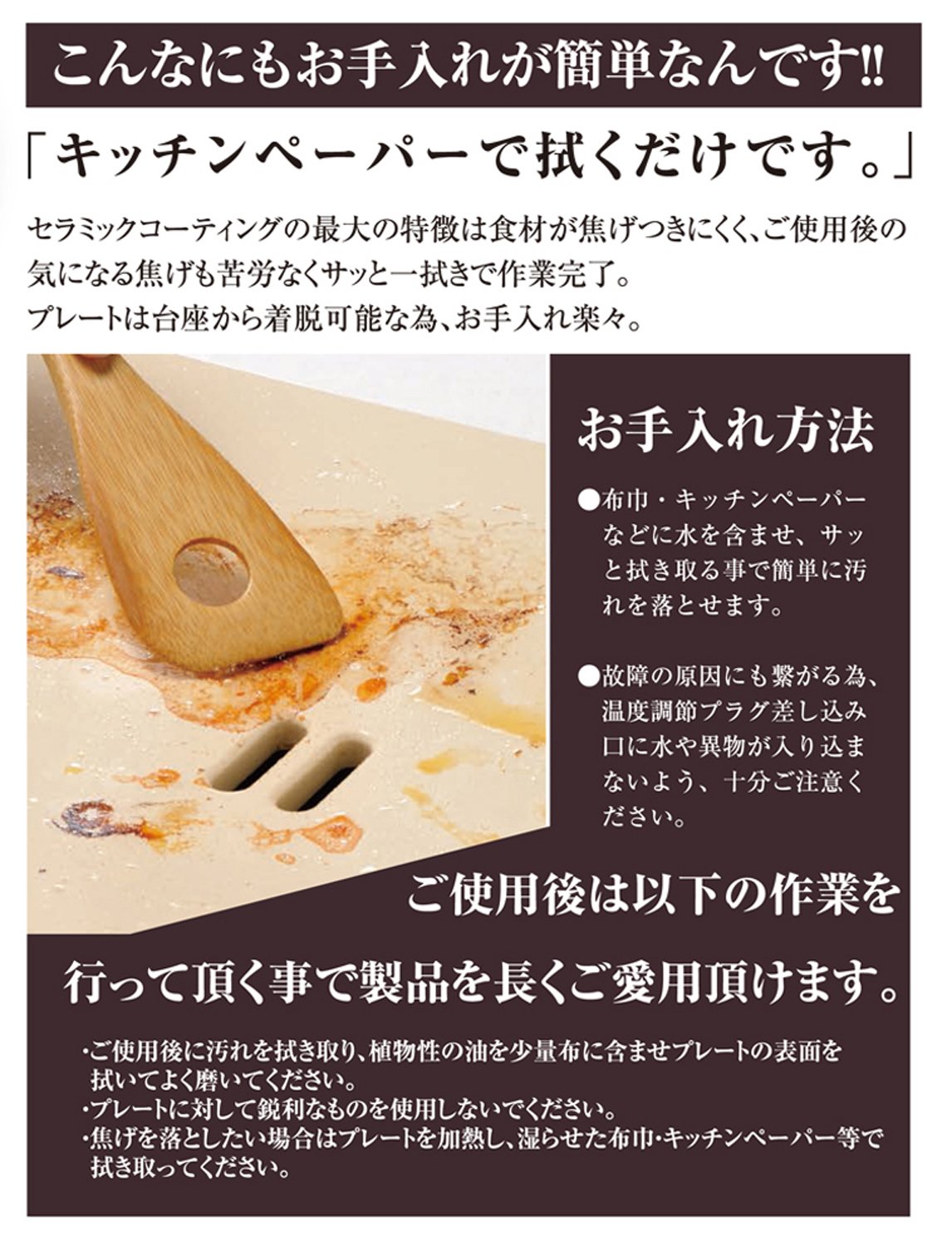 The greatest feature of the ceramic coating is that it is difficult for food ingredients to scorch, and you can perfectly work with charcoal that you care about after using it without difficulty.