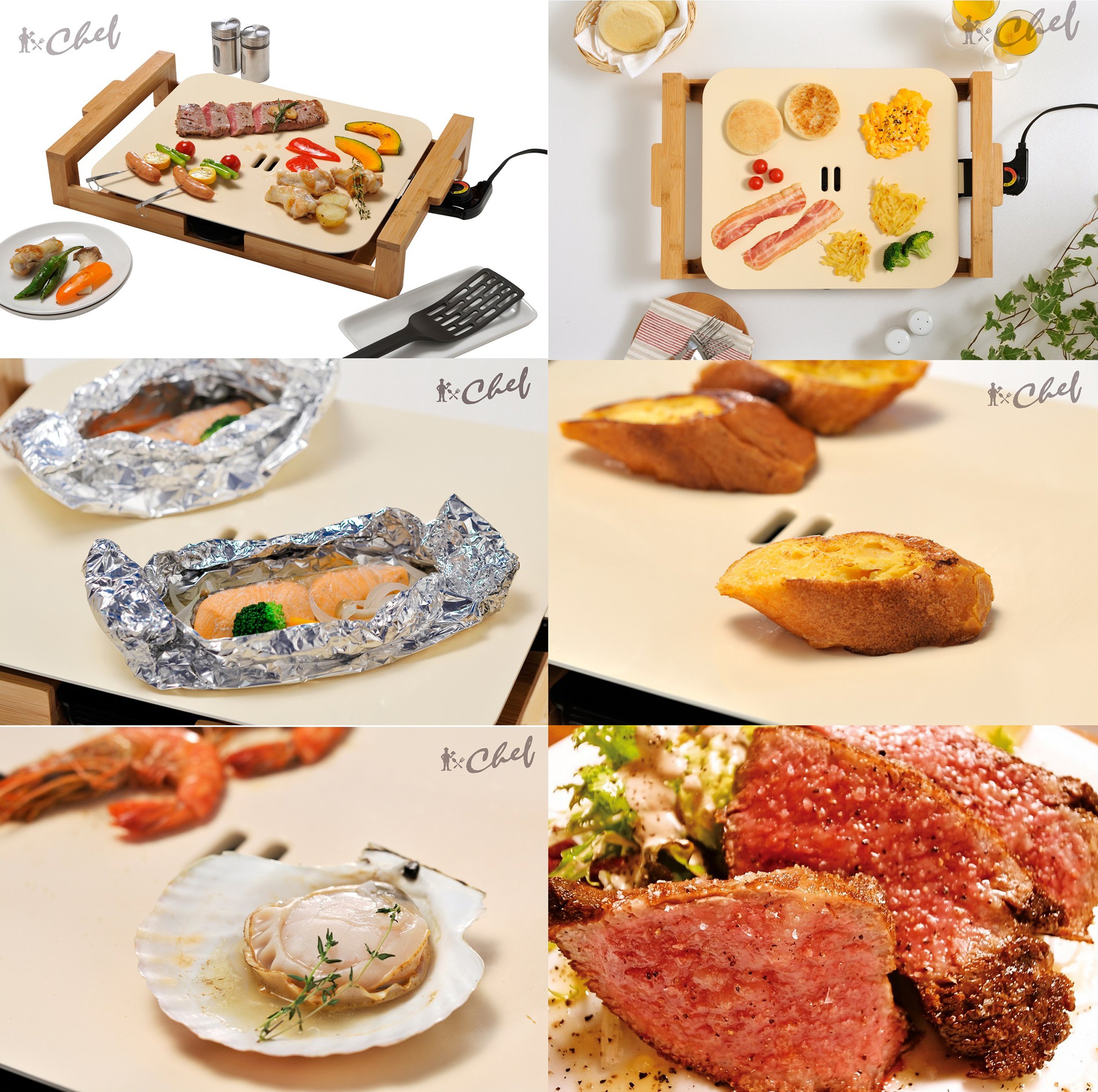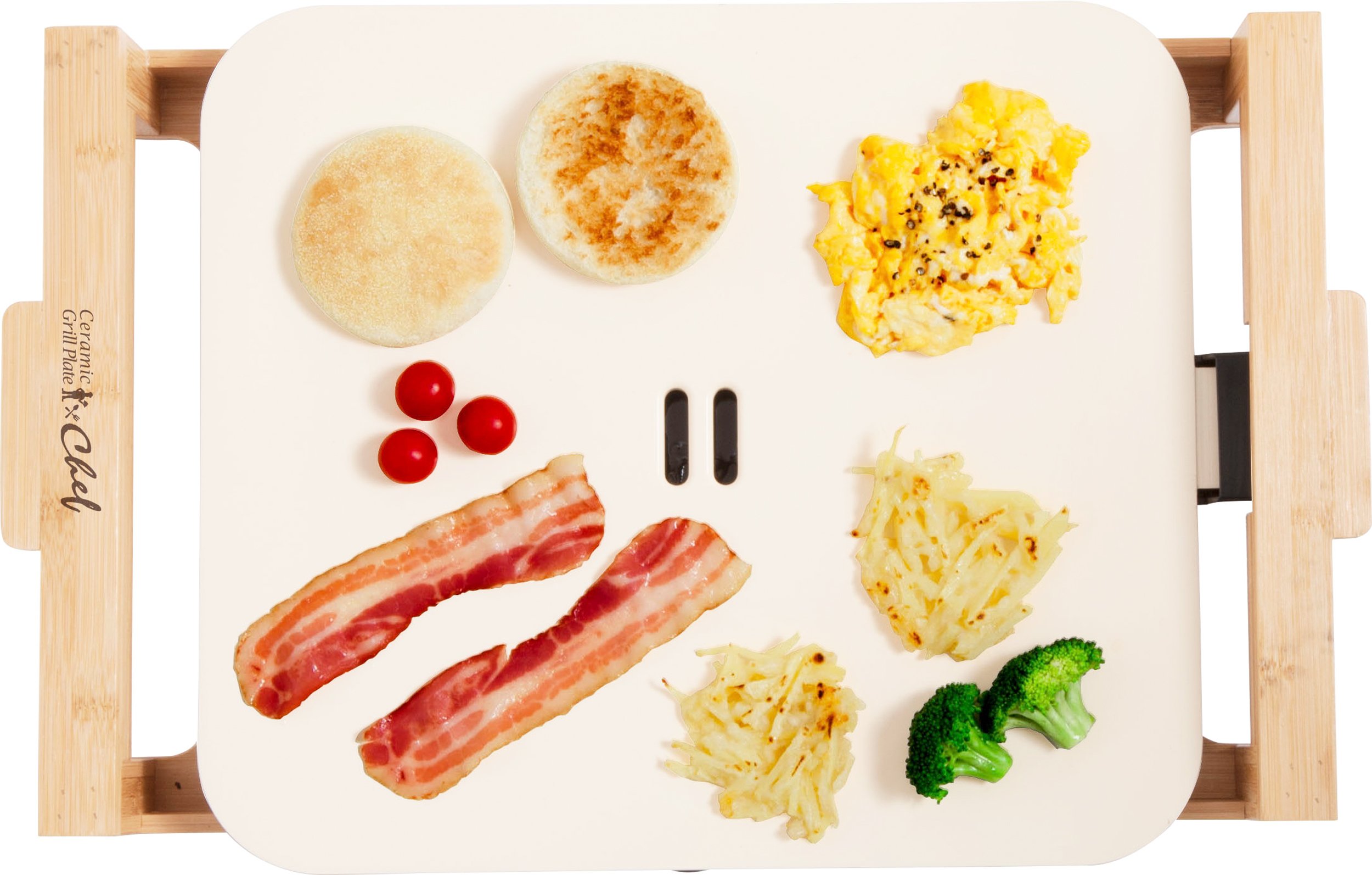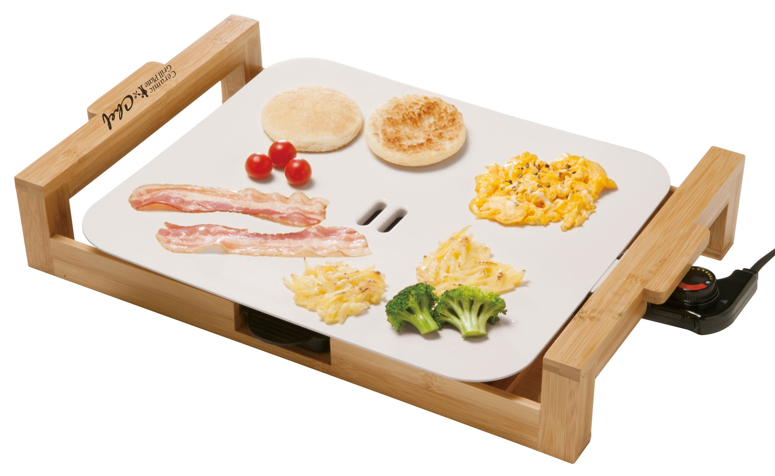 Ceramic coated grill plates quickly let fire through the ingredients.
