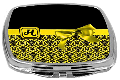 Rikki Knight Letter-H Monogram Damask Bow Design Compact Mirror, Yellow, 2 Ounce