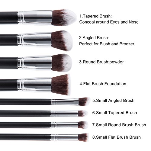 - Four different types brushes(Angled, Round, Flat,Tapered) provide easy and professional solutions for basic cosmetics foundation.