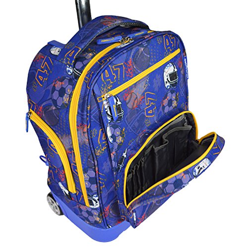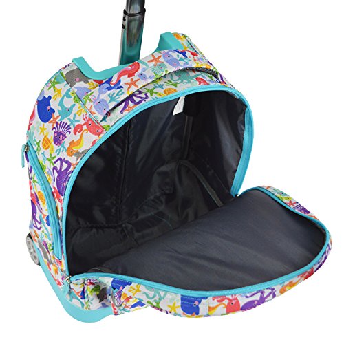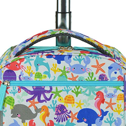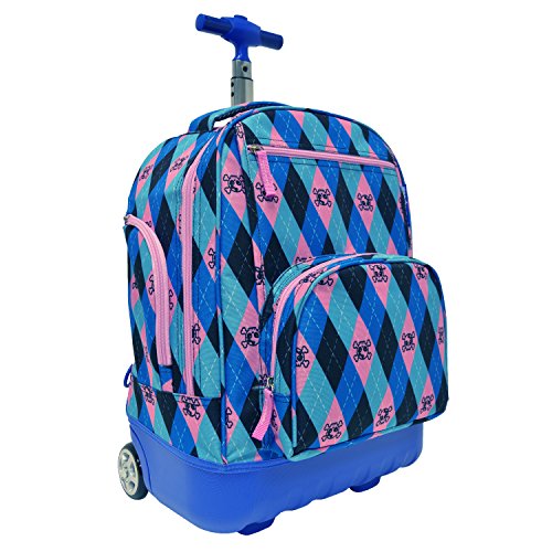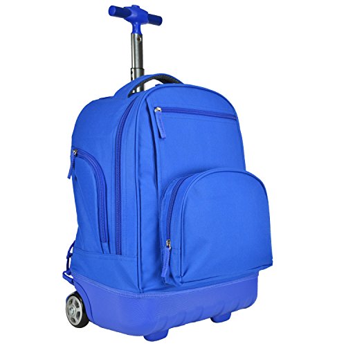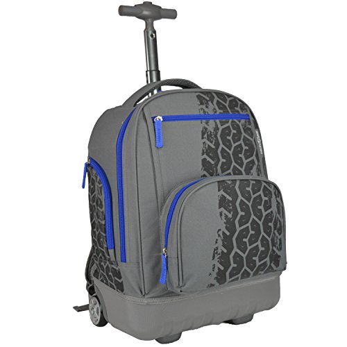 Studio : Travelers Choice Publisher : Travelers Choice Binding : Apparel Product Description World's lightest rolling backpack stylish and trendy color accents polycarbonate molded bottom makes it light and strong soft and quiet wheels for easy maneuverability telescopic push button handle system padded and riveted grip handle air mesh back system and padded shoulder straps roomy compartment and multiple pockets product size: 18 inch h x 13.5 inch w x 8.5 inch d 4 lbs. 0