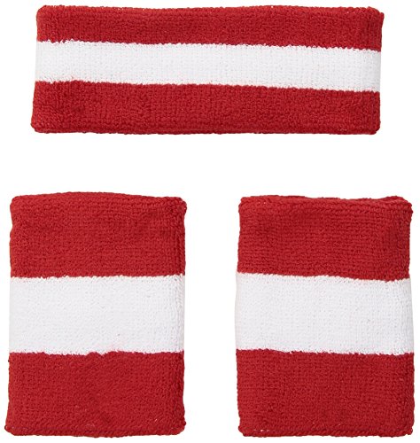 -. Title : Socktower Sweatband Headband Wristband Sports Athletic Fitness Exercise Team Terry Cotton Cloth Striped, Red/White, Large
