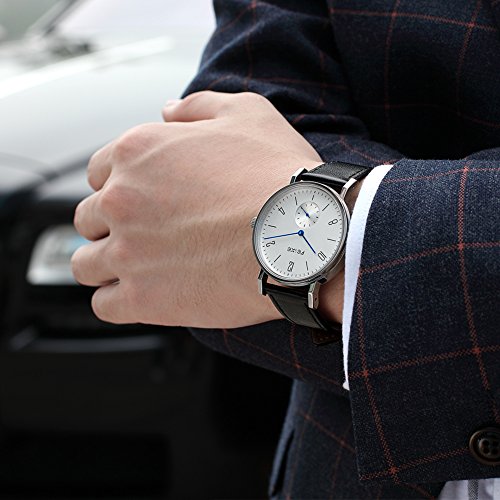【FEATURES】 Fashion round watch featuring white dial with small dial (stop watch) and arabic numerals markers