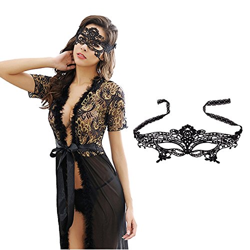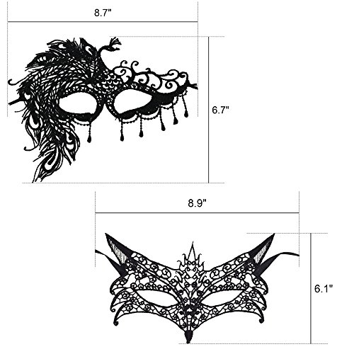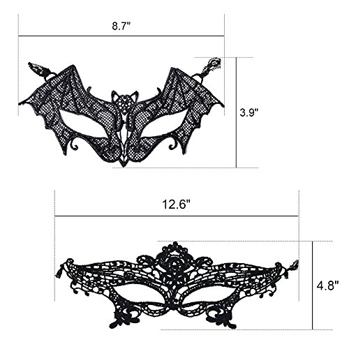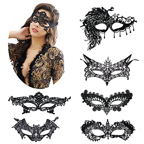 Prohouse 6 Packs Women Girl Sexy Lightweight Lace Venetian Mask Eyemask Eye Mask for Masquerade Party Halloween Carnival Party Costume Ball Black