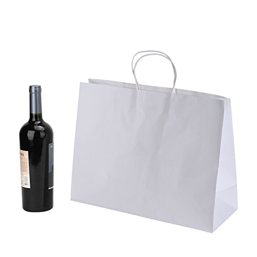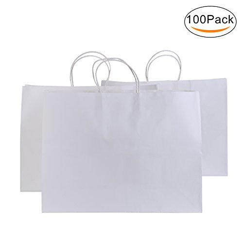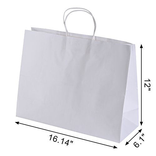 Road 16x6x12 Inches 100 Pcs Large Kraft White Paper Bags with Handles, Shopping, Grocery, Mechandise, Party Bags