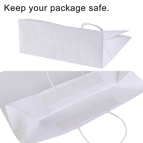 - ✔Strong and Versatile Bags: They are strong and sturdy paper bags that can carry at least 9.9lbs of weight easily.These bags are made with thick plain white kraft paper and have a strong rope handle. The box type bags have a flat bottom so they can stand well.