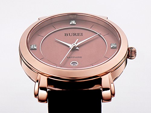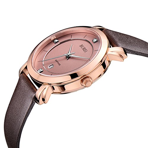 -. Title : BUREI® Women's Date Rose Gold Watch with Genuine Leather Band