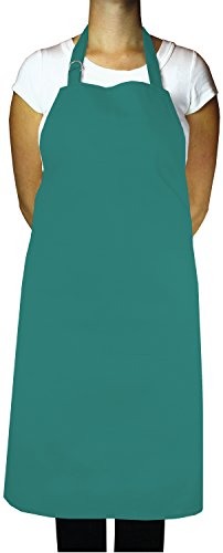 MUkitchen 100% Cotton Adjustable Apron with Large Pockets, Teal - 35 inches