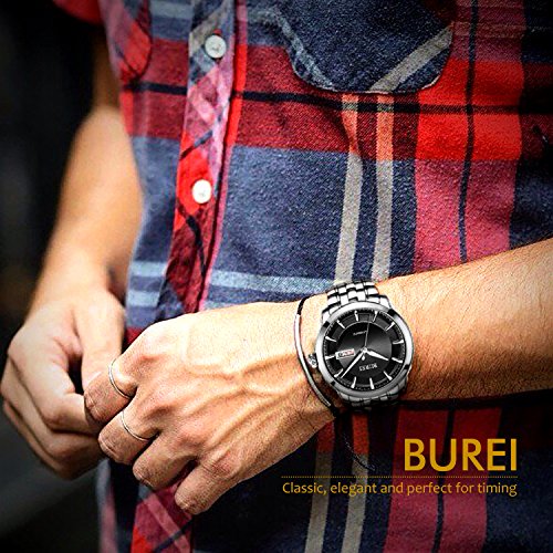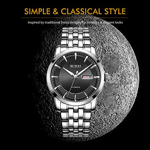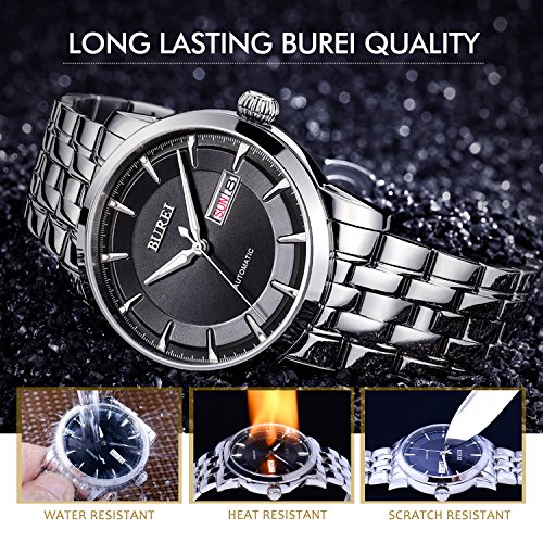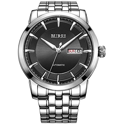 -. Title : BUREI Men's Black Automatic Dress Watch with Day Date and Stainless Steel Bracelet