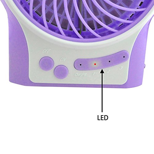 - Title : Topwell® Round Mini Portable Electric Personal Fans LED Lights Function Fans Wireless USB Rechargeable Desk Fan Table Fan 3 Modes Wind Speed Adjustable with 18650 Rechargeable Battery included For Office Or Car use (Purple)