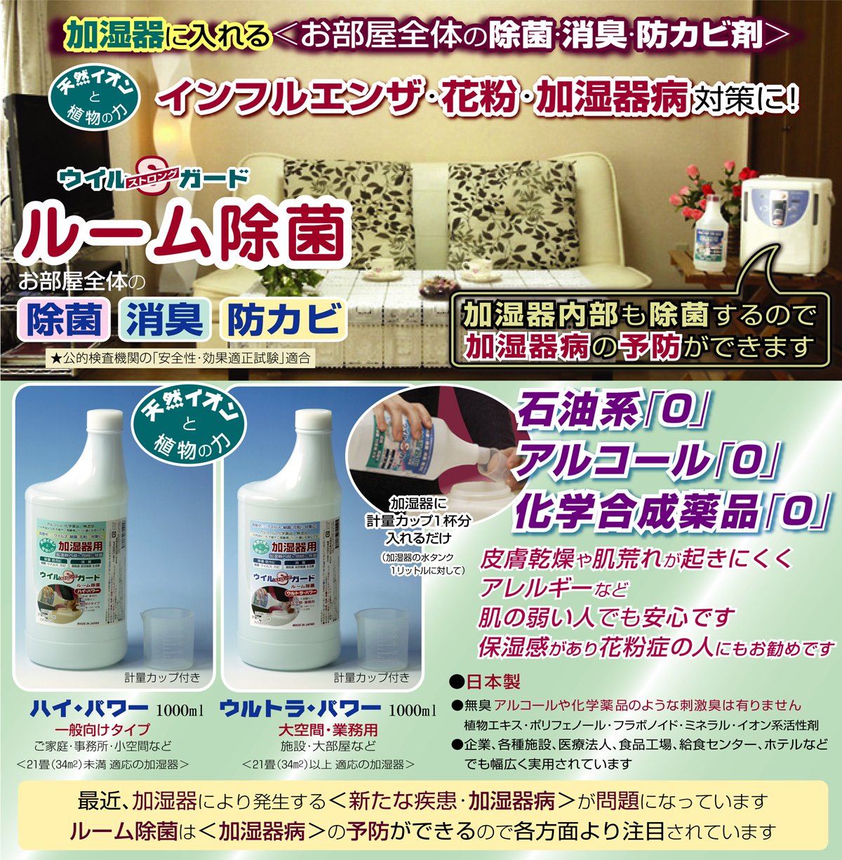 ★ Add to the water tank of the humidifier and use it "for humidifier / disinfectant · deodorant · fungicide".