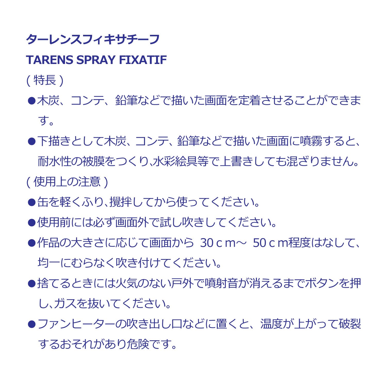It is a spray type fixing solution that fixes powdery color material such as charcoal, pencil, and a container onto a support.