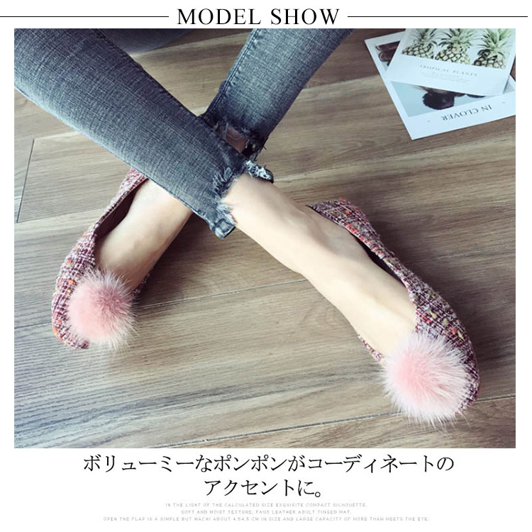 | 超?可愛ぃ女の子らいさ満載のふわふわポンポンパンプス。ボリューミーなポンポンがコーディネートのアクセントに。ワンポイントでシンプルなのに、しっかり可愛さをアピールできちゃう♪浅履きカットだから甲が綺麗に見えて美脚効果◎クッション性のあるインソールで長時間履いても足が痛くなりにくい。今季のディリーに欠かせないトレンドアイテム間違いなし。 | |