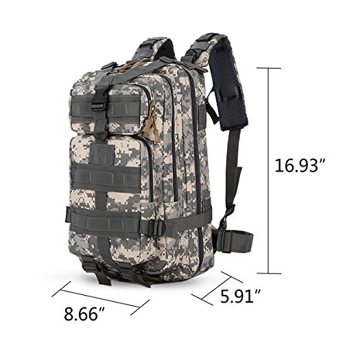 -. Feature : [30L CAPACITY] : Dimension: 8.66''x 5.91''x 16.93''inches. Weights2.2pounds (1020g).1800 cubic inches (30L) capacity. Although the backpack looks small, it can put a lot of things. Interior storage space design easy to carry more travel clothing books, etc. multiple compartments, can place personal belongings, best for 2 days of travel. / [SAFETY POST BAG DESIGN] : Back safety pouch design is convenient to carry valuables to prevent loss. The package parts use firm clasp, and the cold is not deformed. Backpack for men and women. / [WATERPROOF OXFORD FABRIC] : Made with high quality oxford fabric, with high density nylon ribbon and easy and comfortable hand. High density, anti-scratch, water resistant, and have the characteristics of wear-resisting, resistance to dirty, light resistance, anti-wrinkle, etc, are very suitable for outdoor use. / [MOLLE SYSTEM & PROFESSIONAL DESIGN] : The molle help you expand more room and the breathable mesh shoulder straps with plentiful sponge padding help relieve the stress from your shoulder. Molded foam back panel with airflow channels to keep your back cool and dry. / [OCCASION] : Perfect for hiking, occasional travel, day-to-day use, pack beach accessories, suitcase alternative, college, camera compartment, camping, day trips, vacation, travel, school and more, and great gift for everyone.