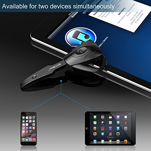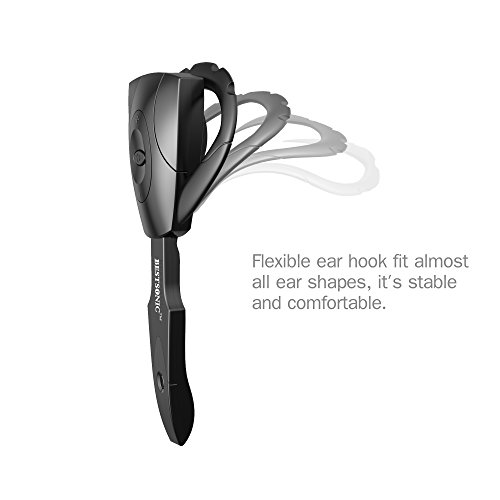4. LIGHTWEIGHT and FLEXIBLE EAR HOOK --- Comes with very smart ear hook, this wireless headset can fit almost all ear shapes. You will not feel any discomfort even long time wearing.