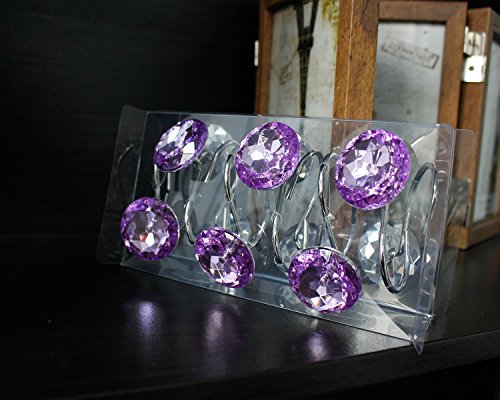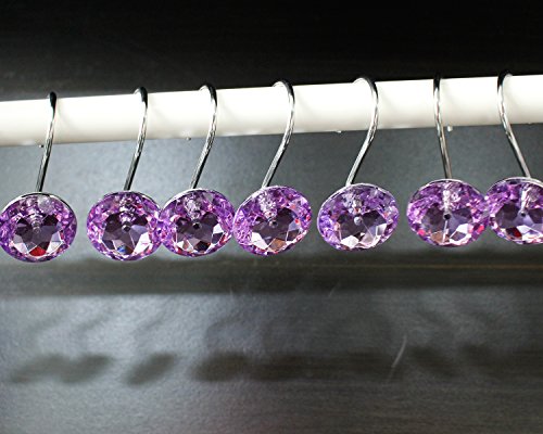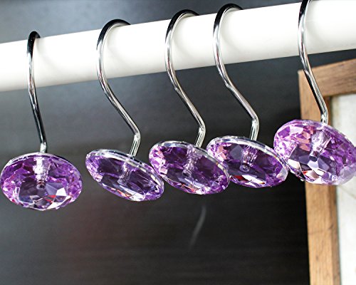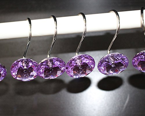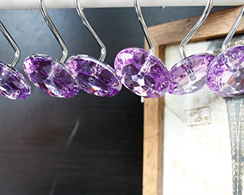 Xshelley Acrylic Diamond Shower Curtain Hooks Rings - Cute Crystal Gems Bling Rhinestones Bath Bathroom Accessories Set of 12pcs (purple)