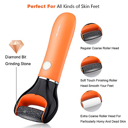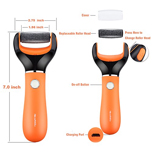 Nice2MiTu Electronic Foot File Pedicure Callus Remover Tools with Diamond Crystals, Rechargeable,Cordless,Water Resistant,Dual Speed