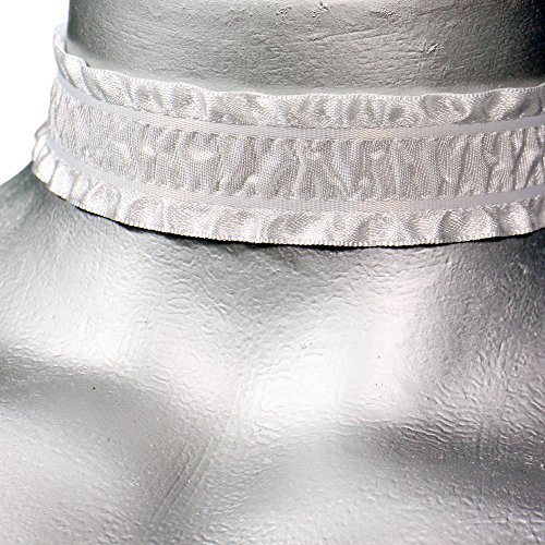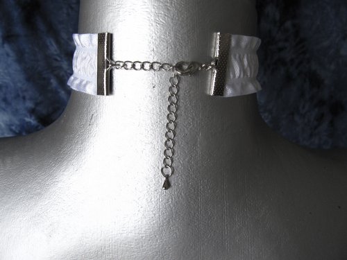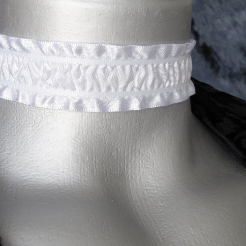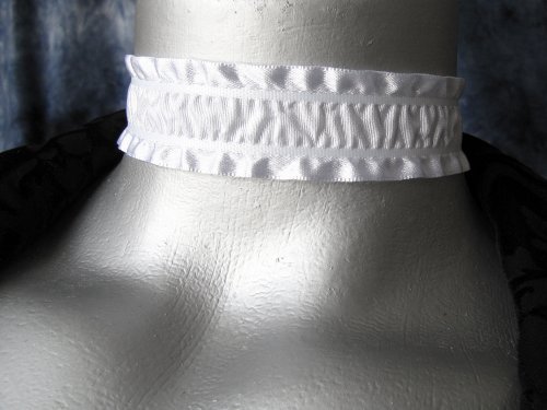 Twilight's Fancy Gathered White Satin Ribbon Choker Necklace -- Size Large