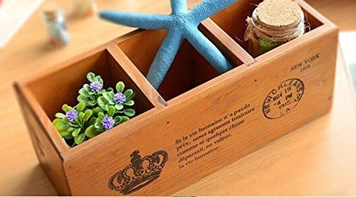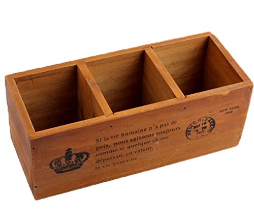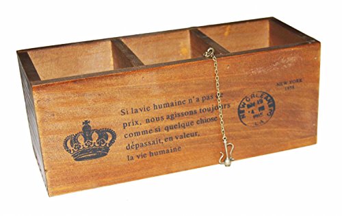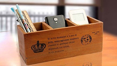 3 Compartment Vintage Wood Desktop Office Supply Caddy / Pen Pencil Holder / TV Remote control Holder/ Desk Organizer