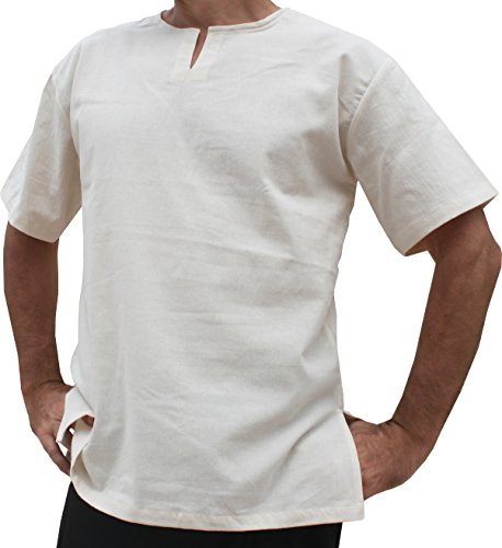 RaanPahMuang Brand Soft Summer Cotton Open Slit Collar Short Sleeve Shirt