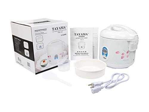 Tayama Cool Touch TRC-04 Rice Cooker 5 Cup with Steamer. 5 Cup Uncooked/10 Cup Cooked Rice. Lock-tight pressure lid keeps rice fresh and moist for hours. Removable non-stick inner pot prevents rice from sticking and ensures fast, easy clean-up. Unique heater plate for evenly efficient cooking result. Automatic keep warm function.Feature