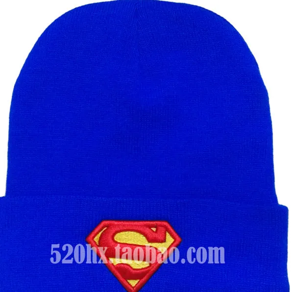 | [해외]새로운 패션 남여 겨울 비니 고품질 솔리드 블루 컬러 힙합 니트 모자 따뜻한 비니 수퍼맨 자수 멋진 모자 |