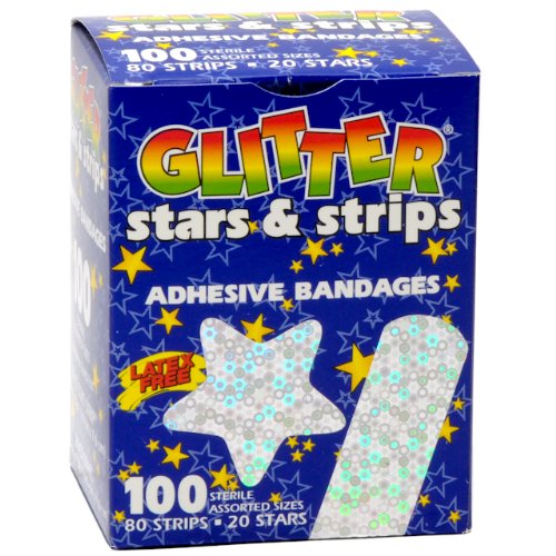 -. Title : Glitter Stars & Strips Adhesive Bandaids, 100/Box. (80 Strips and 20 Stars Bandaids)